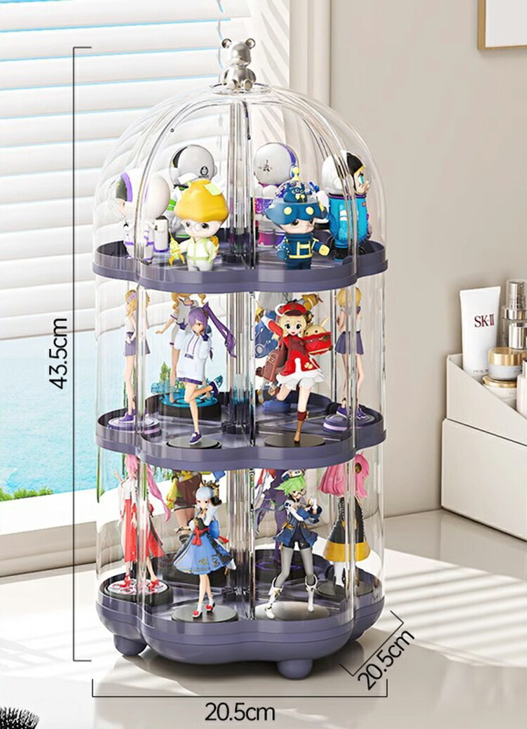 フィギュア収納ケース 360°観賞 回 ホビー 人気 ベージュ(透明仕切り板) ベージュ パープル(透明仕切り板) パープル 2層 3層