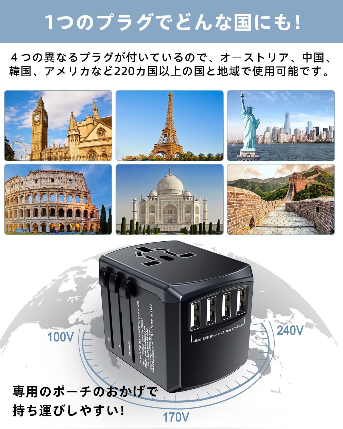 変換プラグ 海外 韓国 SEタイプ cタイプ コンセント 変換 電源プラグ 旅行充電器 4usbポート USB-C変換器 bf c se a o 急速充電 イタリア オーストラリア マルチ変換プラグ