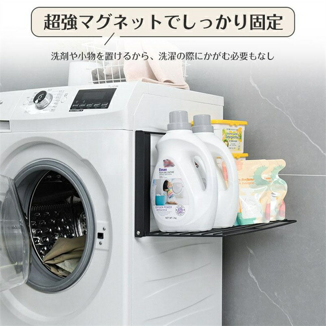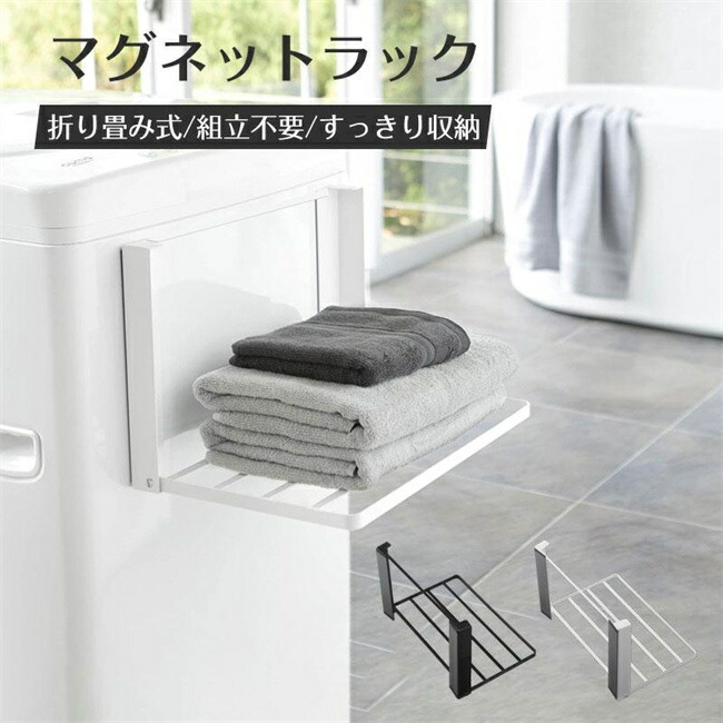 洗濯機ラック 洗濯機横マグネット折り畳 ホワイト ブラック
