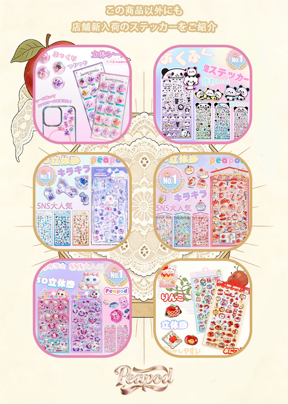 SNS 大人気 3D立体中実タイプ レ 文房具 事務用品 ギフトラッピング用品 シール ステッカー 新登場! A B C D E F 6枚セットA~F