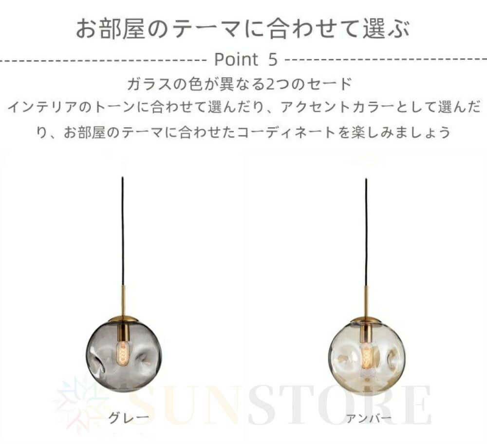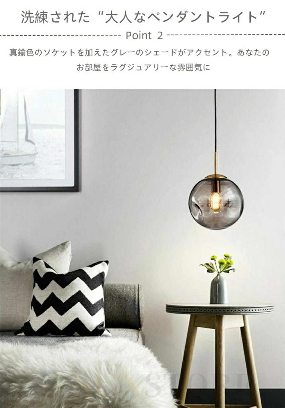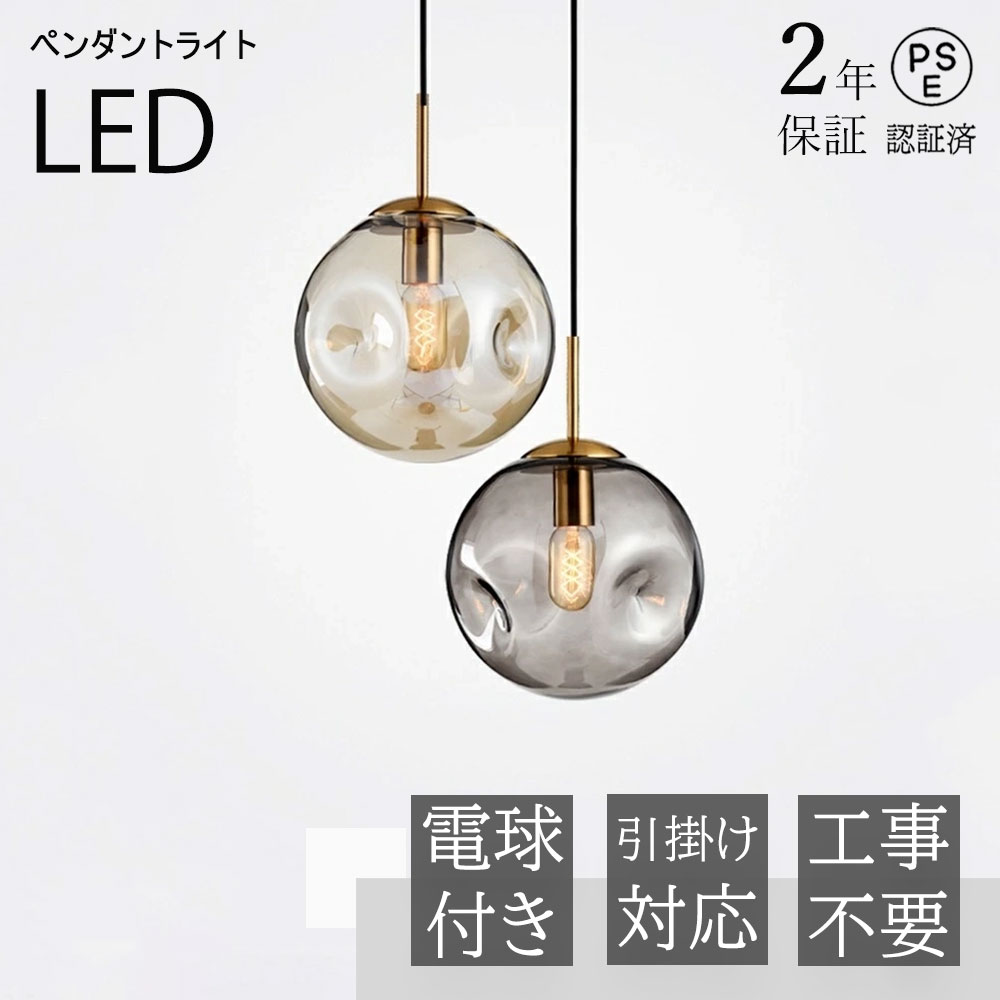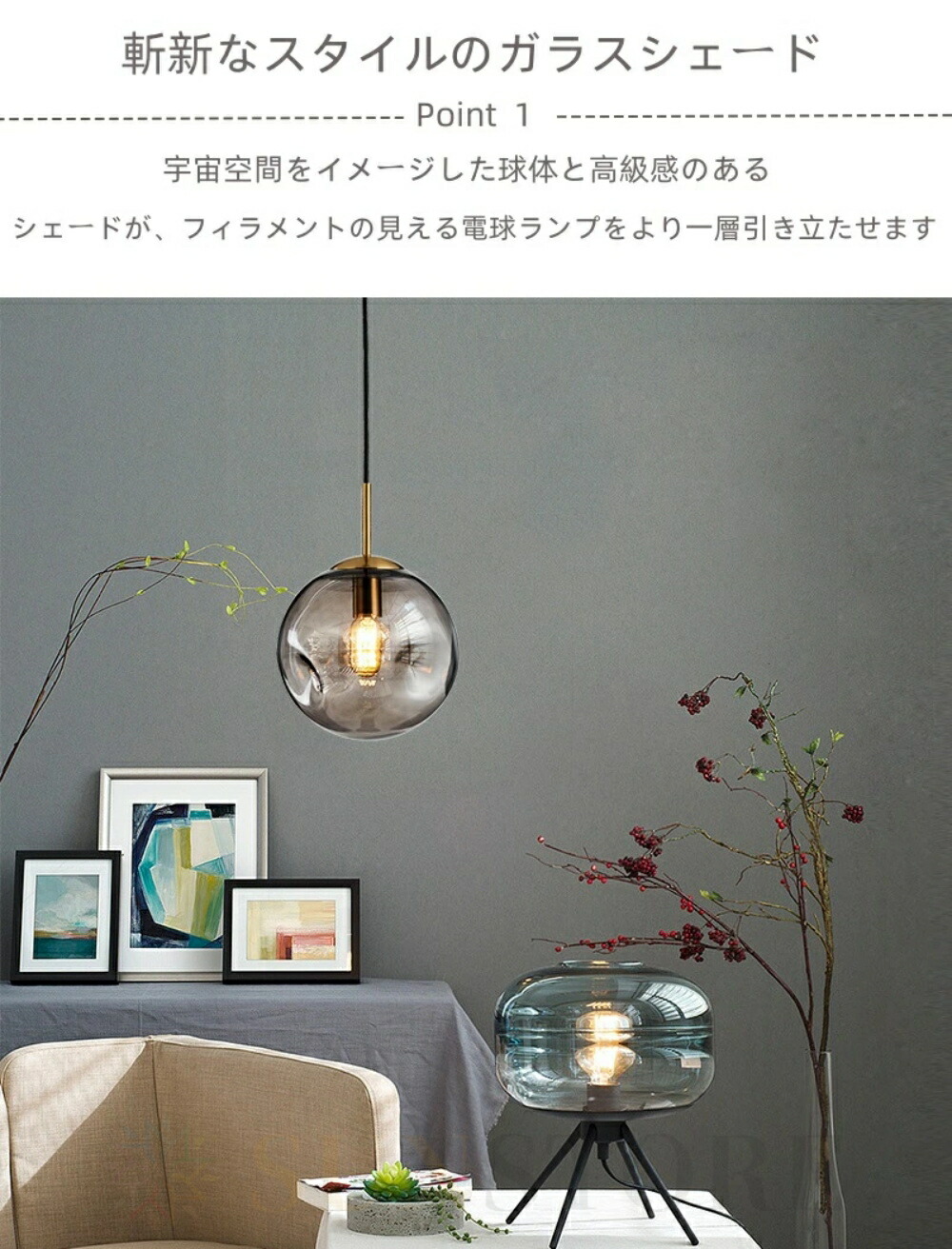 ペンダントライト 北欧 1灯 ガラス 電球色・引っ掛けプラグ 電球色・ダクトプラグ グレー アンバー