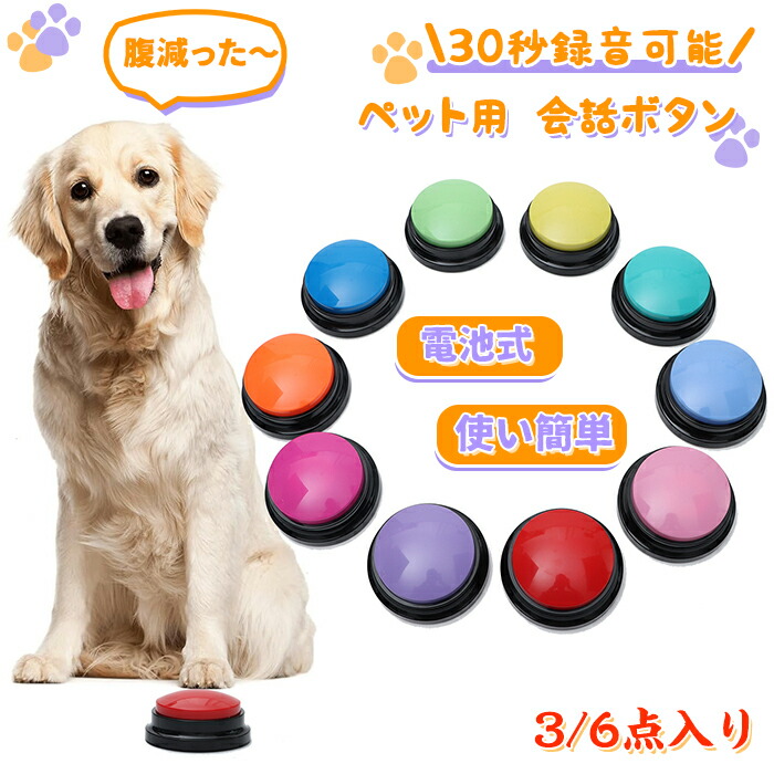 会話ボタン 犬 会話 録音ボタン 犬用 ペット ペットグッズ 通販 6点セット(くすみカラー) 6点セット(原色) 3点セット(ランダム色) 1点(ランダム色)