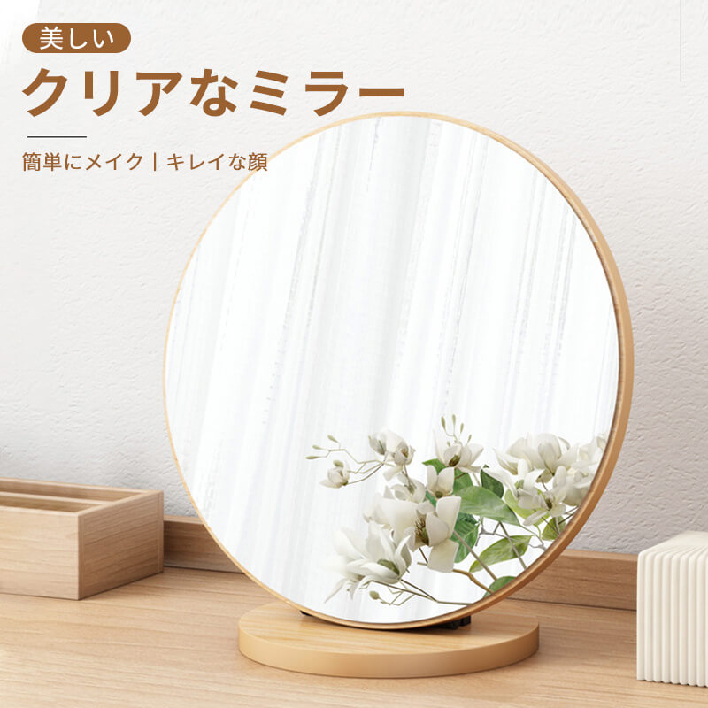 化粧台 メイク シンプル ミラー ドレ 白 褐色 木の色