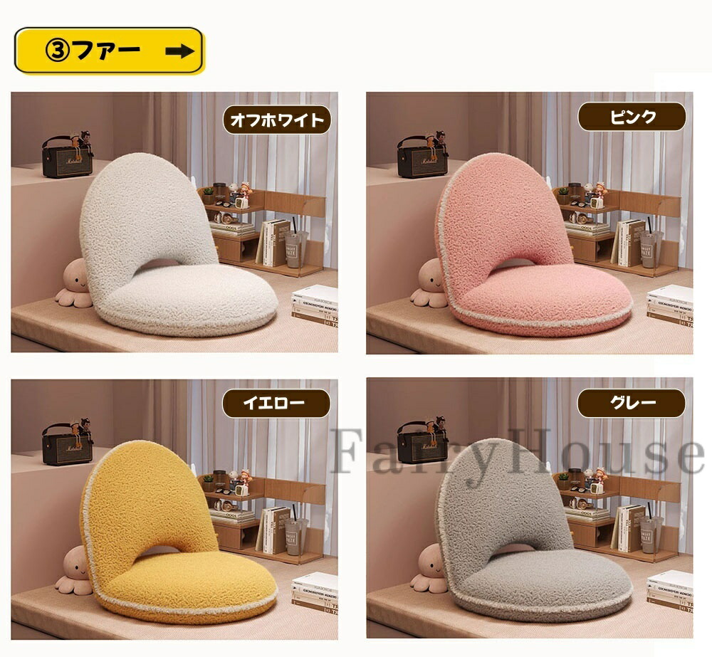 座椅子 リクライニング リラックスチェ (1)オフホワイト (1)オレンジ (1)グリーン (1)ダークグレー (2)オフホワイト (2)コーヒー (2)ライトグレー (2)ダークグレー (3)オフホワイト (3)ピンク (3)イエロー (3)グレー