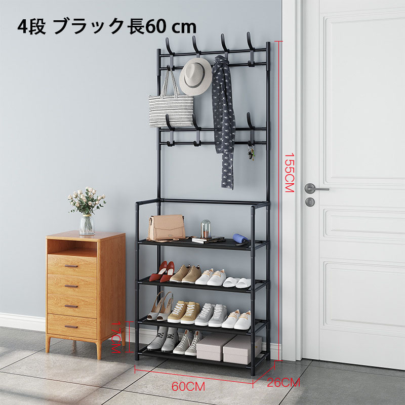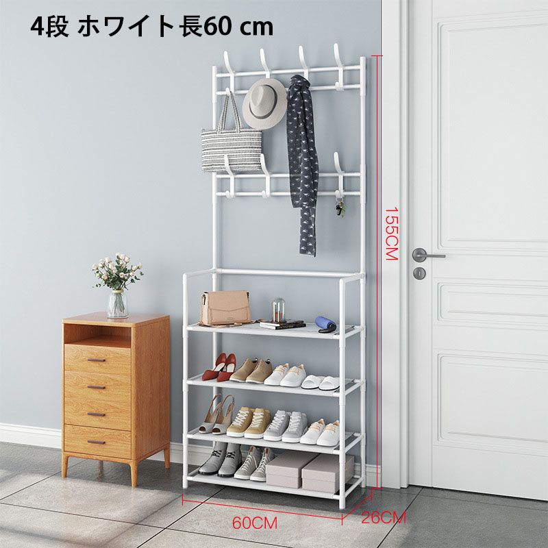 シューズラック 靴 収納 鉄パイプ 省 4段 ホワイト 4段 ブラック 5段 ホワイト 5段 ブラック 長60 cm 長80 cm