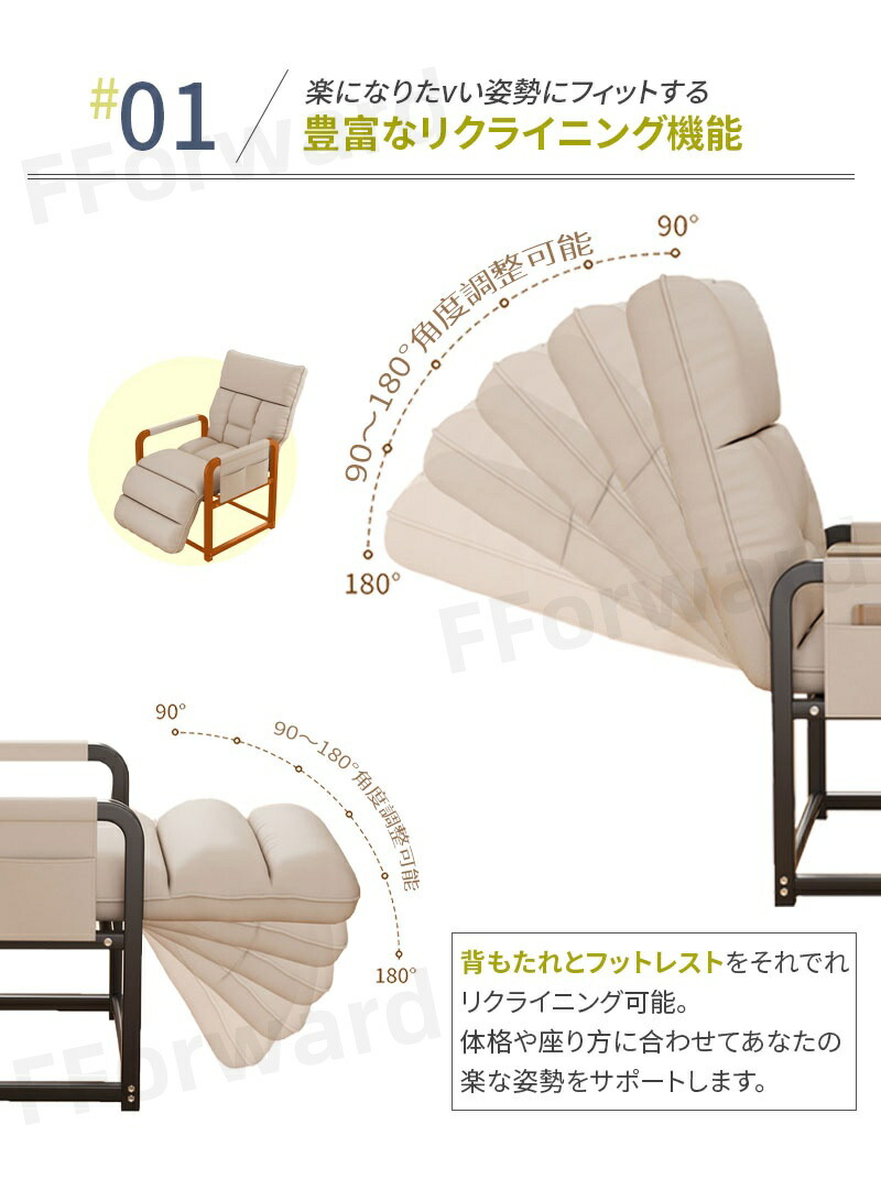 リクライニングチェア 座椅子 一人掛け オレンジ ダークグレー ベージュ なし あり