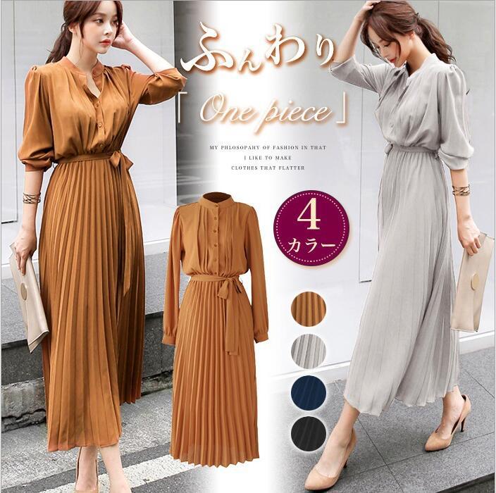 送料無料ワンピースロング ワンピース ワンピース 顔合わせ ワンピース ロング お呼ばれ ワンピース プリーツ裾 シャツワンピ レディース 大人 長袖シャツワンピース
