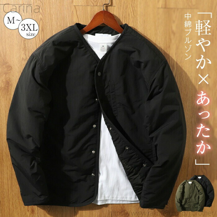 防寒 メンズ ジャケット キルティング 中綿キルト アウター ライトアウター ユニセックス ノーカラー 長袖 Vネック
