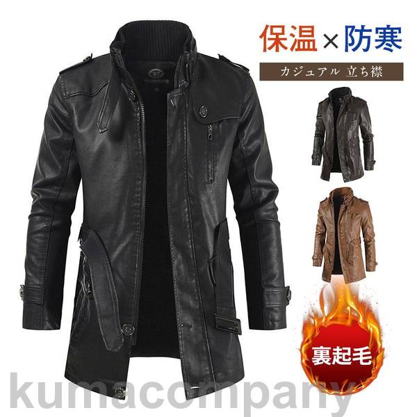 革ジャケット メンズ 革ジャン レザージャケット 保温 防寒 裏起毛 暖かい 立ち襟 お兄系 バイクジャケット 新作 防風 オシャレ ギフト アウター