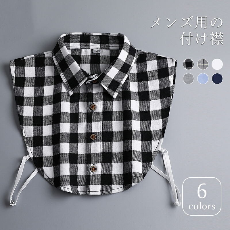 付け襟 スタンドカラー メンズ コットン シャツ襟 付け衿 折り襟 つけえり 角襟 無地 チェック柄 綿混紡 付けえり 重ね着 レイヤード フォーマル 男性 メンズファッション ファッション小物
