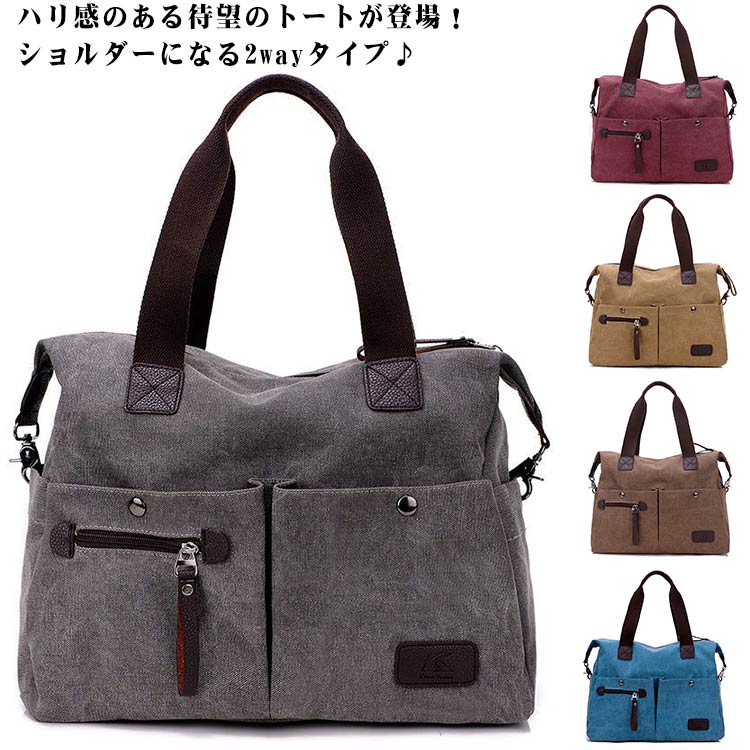 レディース 大容量 多収納 スクエア 大きめ メンズ トートバッグ 帆布 エコバッグ ショルダーバッグ 2way マザーズバッグ トラベル ママバッグ トートバック 通勤 通学 旅 無地