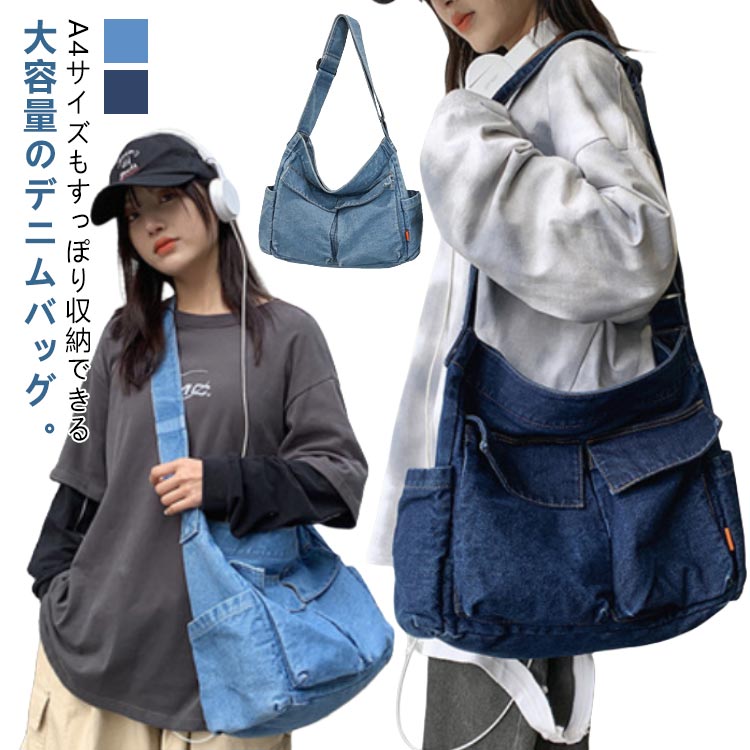 ショルダーバッグ レディース 通学 ポケット多い トートバッグ スクエア 肩がけ 男女兼用 ハンドバッグ メンズ ジーンズ素材 カバン バック 大容量 デニム 斜め掛け バッグ お出かけ