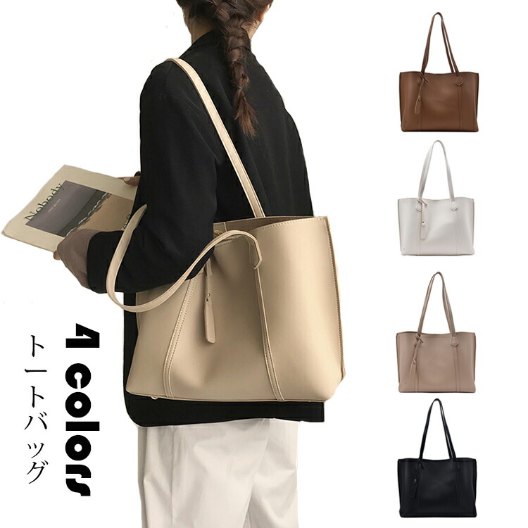 トートバッグ レディース ショルダーバッグ 2 ハンドバッグ 風 おしゃれ 鞄 通学 通勤用バッグ 横型 肩掛け 手持ち 大容量 軽い 純色 革バッグ 手提げ袋 お洒落 人気 選べる4色