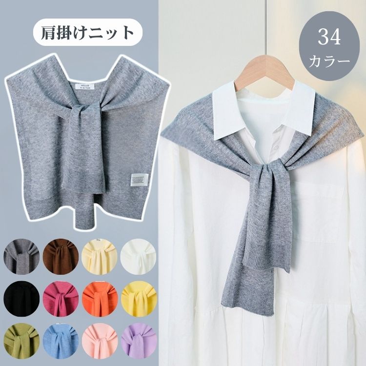 34カラーストール ニット ショール 肩掛け ケープ マフラー カーディガン風ストール 肩かけニット 付け襟 重ね着 薄手 ネックカバー ウール レディース 肩マント フェイクカーディガン たす 女性