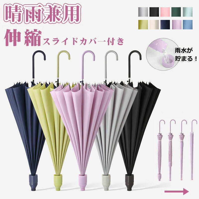 カバー付き傘 伸縮スライド カバー付き 傘 雨傘 レディース 長傘16骨 ジャンプ傘 傘 レディース コンパクト 傘 かさ 折りたたみ 風に強い 防水 車用傘 ワンタッチ 頑丈 丈夫 16本骨 撥水