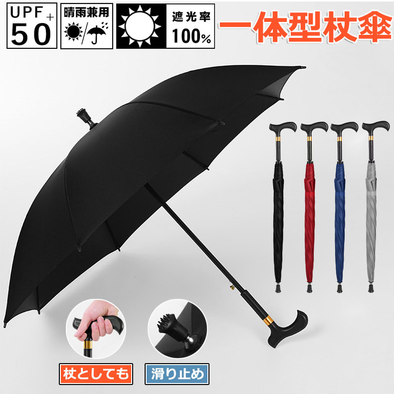 杖 ステッキとしてご使用になれるステッキ傘 つえかさ 無地 手開き 晴雨兼用 自立杖 自立式ステッキ ステッキ傘 杖傘 長傘 一体型 ステッキアンブレラ 雨傘 超撥水 耐強風 梅雨対策 日傘 U 大判