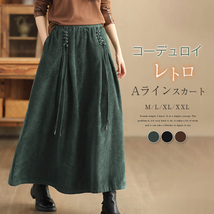 コーデュロイ スカート レディース Aラインスカート コーデュロイスカート Aライン フレア ロングスカート フレアスカート ボトムス ウエストゴム 春 秋 冬 大人 可愛い オシ ふんわり