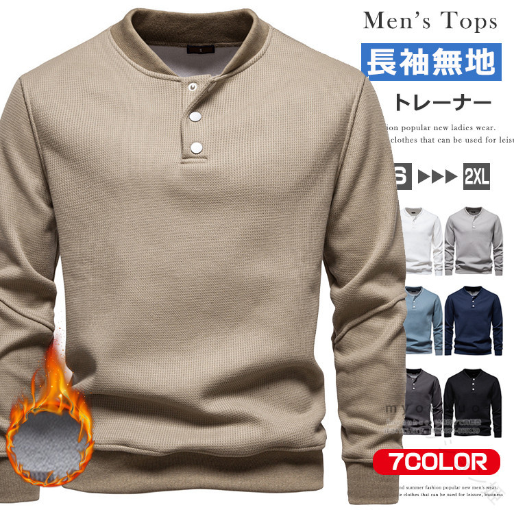 裏起毛 トレーナー メンズ 長袖 ヘンリーネック スウェットトレーナー トップス ワッフル 無地 プルオーバー カジュアル ルームウェア スポーツ おしゃれ 長袖トレーナー 秋服 秋冬 スウェット 秋
