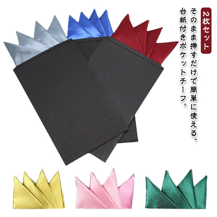 2枚セット ポケットチーフ メンズ ワンタッチ 簡易ポケットチーフ ハンカチーフ 挿すだけ 胸ポケット 台紙付き 差し込み ポケット チーフ 無地 結婚式 冠婚 パーティー シルクタッチ