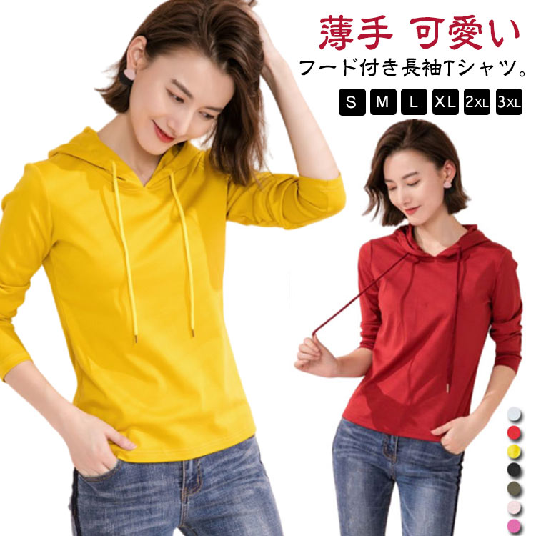 パーカー 薄手 フード付き tシャツ レディース 長袖 トップス カットソー プルオーバー 無地パーカー 長袖tシャツ シンプル 大人 カジュアル ソフト 大きいサイズ 春 夏 秋 春服 秋服 ル 冬