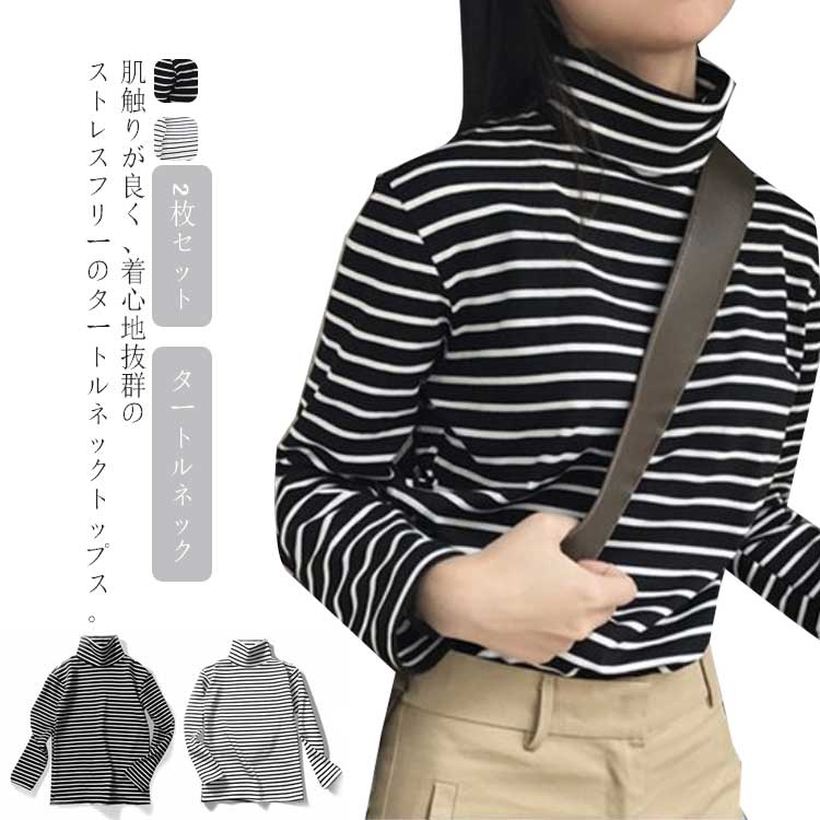 タートルネック ハイネック tシャツ Tシャツ ルームウェア 長袖 無地 体型カバー タートル 半袖 冬 ストライプ柄 2枚セット カットソー インナー トップス 重ね着 ロンT 春 秋 レイヤード