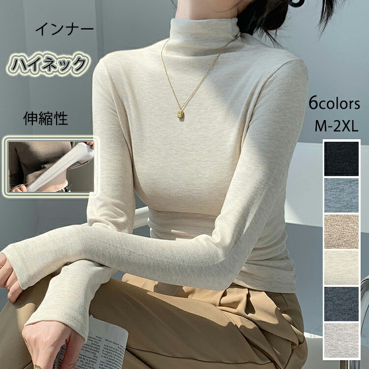 ハイネック タートルネック 長袖 シャツ トップス レディース インナー カットソー