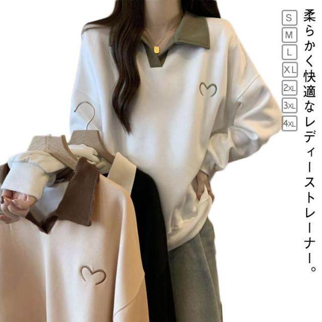春 襟付き トレーナー 長袖 スウェット レディース ポロシャツ プルオーバー ゆったり カジュアル 秋 柔らかい おしゃれ 大きいサイズ 通勤 日常着 体型カバー 着瘦 通学