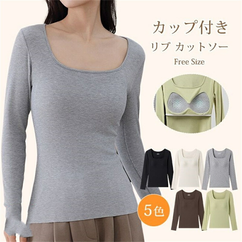 インナー レディース 保温下着 カットソー 長袖 カップ付き パッド付き 秋冬 薄手 無地 温かい 暖かい 防寒 アンダーウェア 通勤 日常 肌着