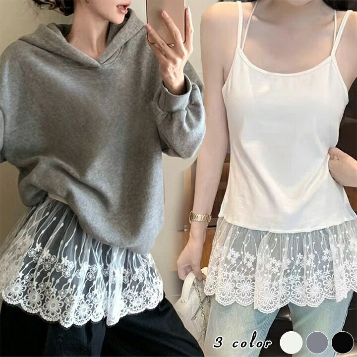 レースドッキング キャミ 2A27 レイヤード レディース レースキャミソール トップス エレガント 無地 韓国ファッション 大人可愛い