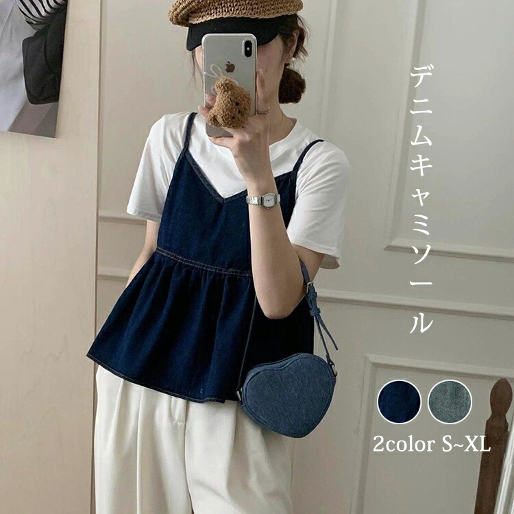 デニム トップス キャミソール レディース ベスト ゆったり 重ね着 レイヤード 軽い 薄手 袖なし 着回し カジュアル 大人 可愛い オフィス 20代 30代 40代 50代