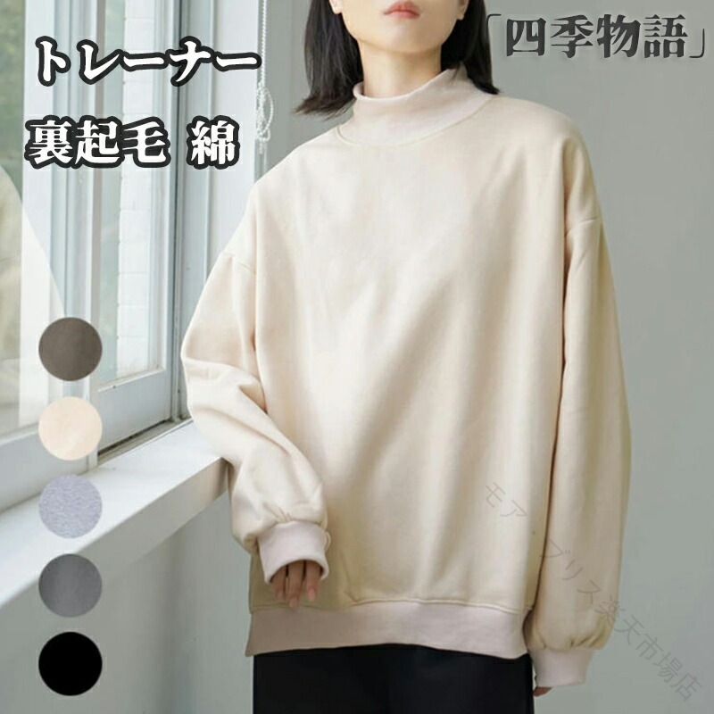 トレーナー レディース 裏起毛 綿 秋 コットン100% ふわふわ 30代 40代 50代 60代 女性 ファッション 綿100 あったか 冬 カジュアル スウェット 無地