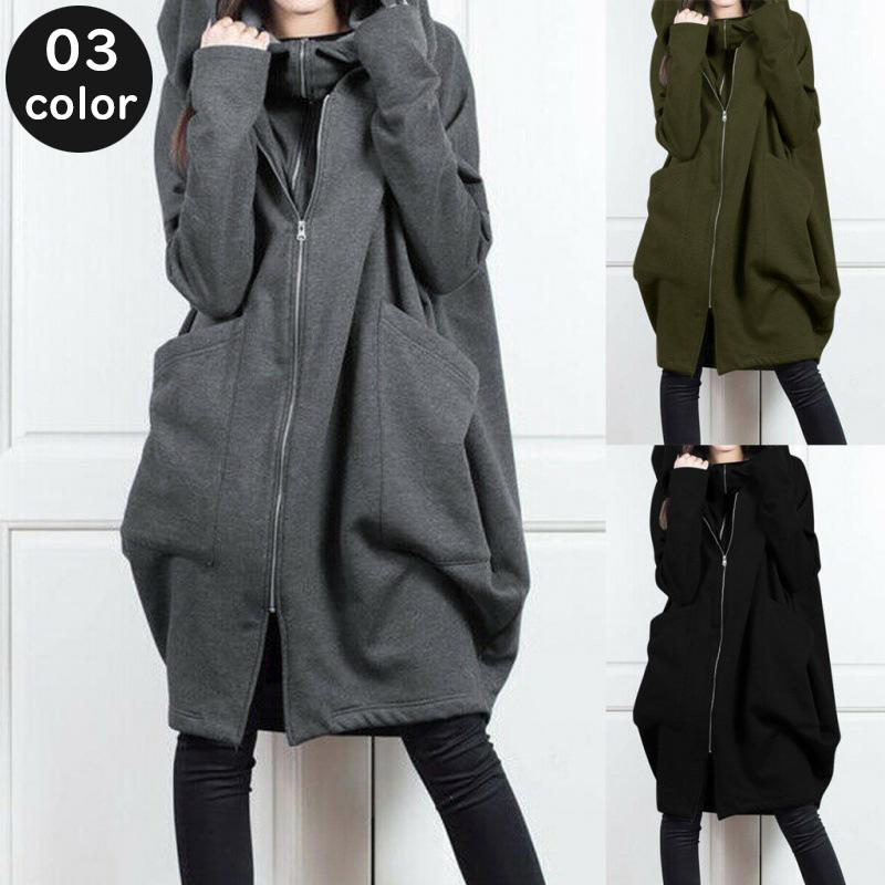全20色 ロングパーカー 体型カバー レディース 秋 冬 フード付き スウェット ジップアップパーカー ロングコート あったか 裏起毛 スウェットカーディガン ゆったり 大きいサイズ 無地