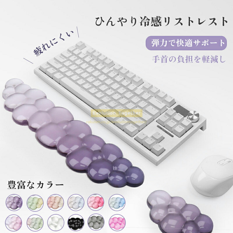 リストレスト 冷感 手首 クッション 手&首肘 疲労軽減 柔らかい アームレスト マウス用 キーボード用 涼しい シリコン製 透明感