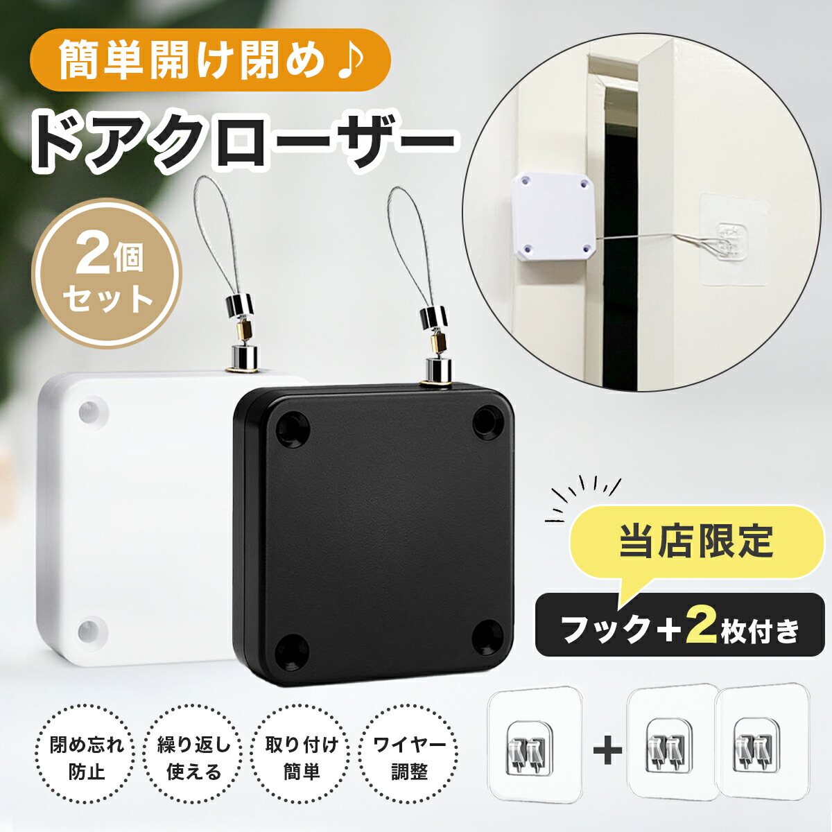ドアクローザー 後付け 引き戸 玄関 室内 ワイヤー 引き戸クローザー オートロック 自動 ドアロック 引き戸ロック 2個セット 取り付け簡単