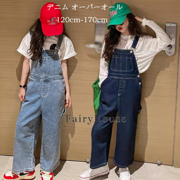 子供服 女の子 デニム オーバーオール ダンス衣装 キッズ サロペット デニムパンツ ジュニアパンツ 子供パンツ ボトムス 長ズボン ダークブルー おしゃれ レジャー 通 ライトブルー