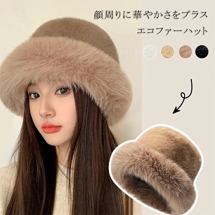 顔周りに華やかさをプラスするエコファーハット ふわふわ 可愛い 帽子 秋冬
