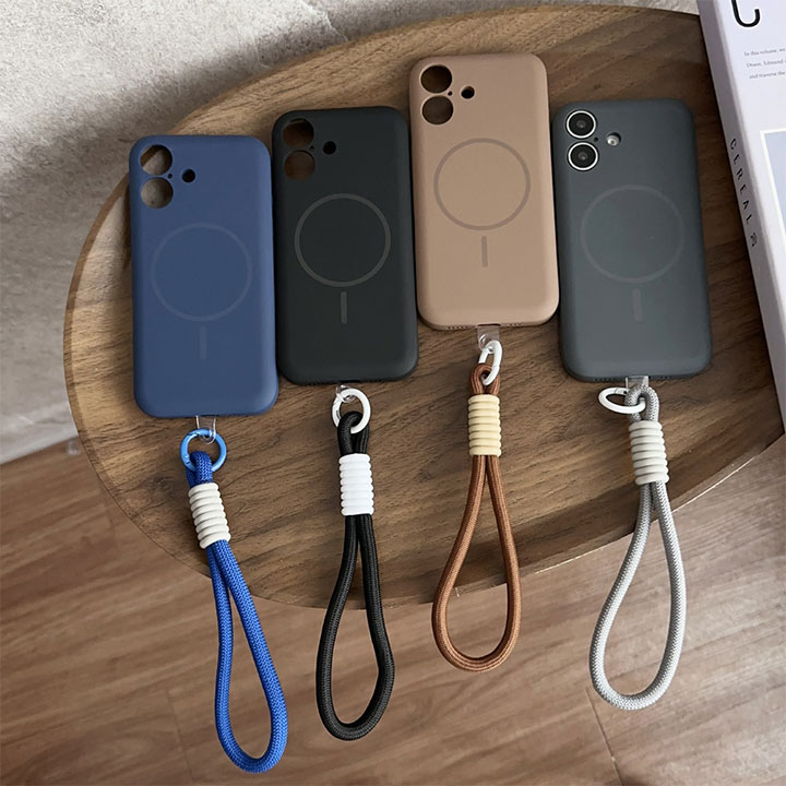 ストラップ付き iPhoneケース 持ちやすい マグセーフ充電対応 ワンタッチ充電 ぷっくり うねうね 可愛い 落下防止 アイフォン 便利雑貨 黒 グレー ブルー iPhone16 iPho ベージュ