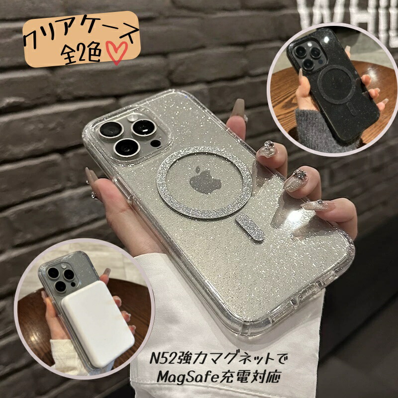 iPhone17Proケース マグセーフ magsafe キラキラ 大人かわいい iPhone17ケース シンプル 透明 クリア 白 黒 カメラ保護 iPhone16Proケース 軽量 薄型 i ラメ