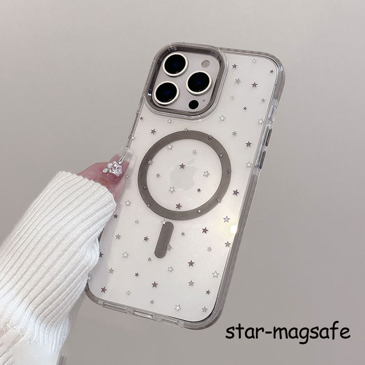 iPhone16ケース マグセーフ ドット クリア 透明 星 スター アイフォンケース スマフォケース ワンタッチ吸着 ワンタッチ充電 可愛い 女の子 カメラレンズ保護 落下防止 ゴージャス 耐衝撃