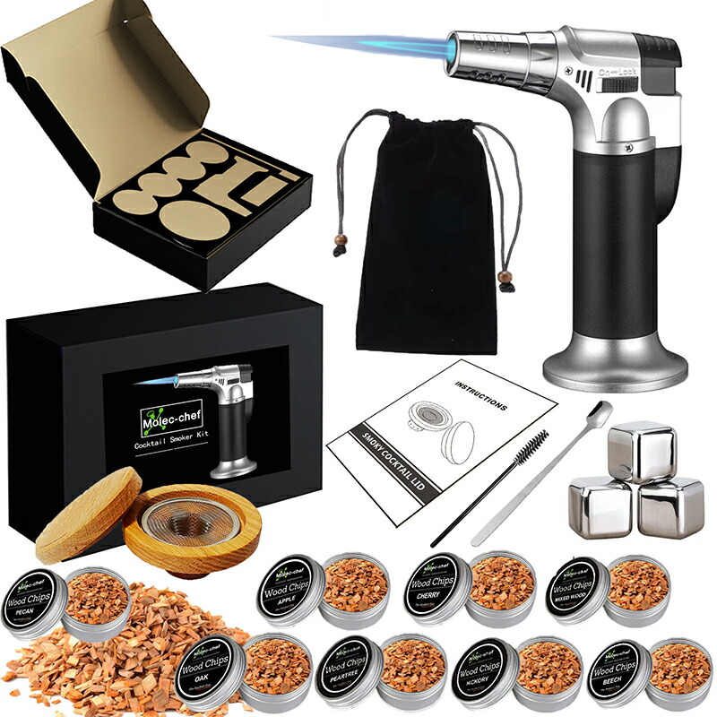 カクテルスモーカー 燻製器 家庭用 スモーク スモークマシン カクテル スモーカー 燻製器スモーカー カクテルスモーカーキット 4種類の木製チップ付き 木製カクテルスモーカーキ 燻製キット