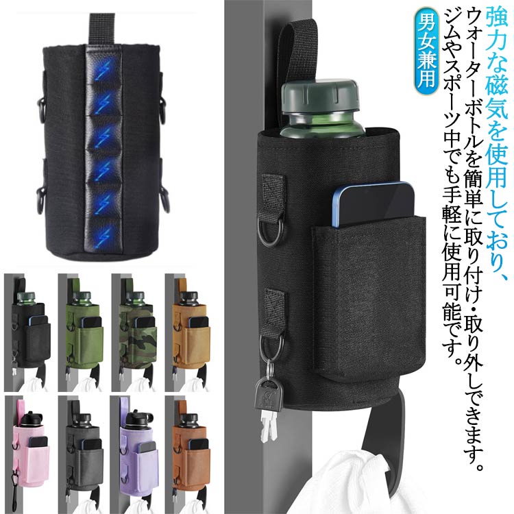 水筒カバー 磁気ボトルバッグ 旅行 マグネット付きウォーターボトルホルダー ウォーターボトルバッグ スマホ収納 男女兼用 ジム 保冷 山登 運動会 保温 仕事 スポーツ用の磁気ジムバ 通学