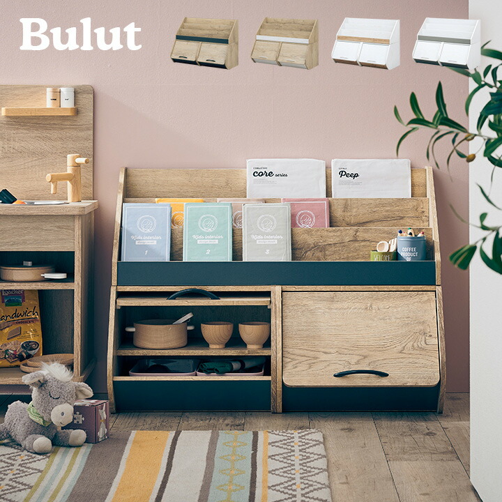 絵本ラック&おもちゃ収納 絵本棚 おもちゃ 収納 おもちゃ箱 本棚 おもちゃ棚 ロータイプ 幅80cm ブックラック キッズラック リビングラック 子供 子供部屋 シンプル Bulut Low 子ども
