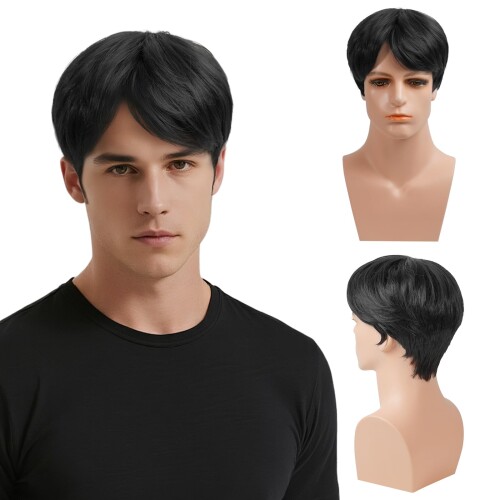 1.素材:この男性用ウィッグは高品質の高温シルクで作られており、優れた耐熱性とスタイリング能力を持っています。自分で