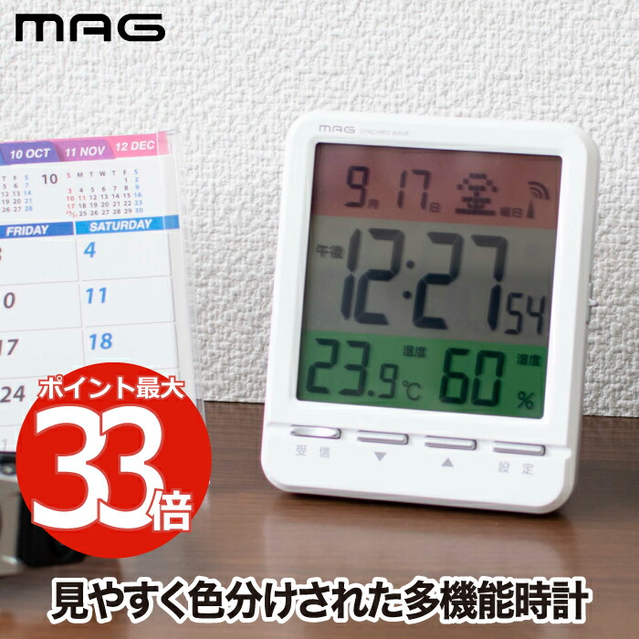 電波目覚まし時計 デジタル 置き時計 電波時計 温湿度計付き おしゃれ MAG スペクトル 高精度アラーム カレンダー機能付き スヌーズ コンパクト 小型 色分け デジタル時計 温度計 熱 見やすい