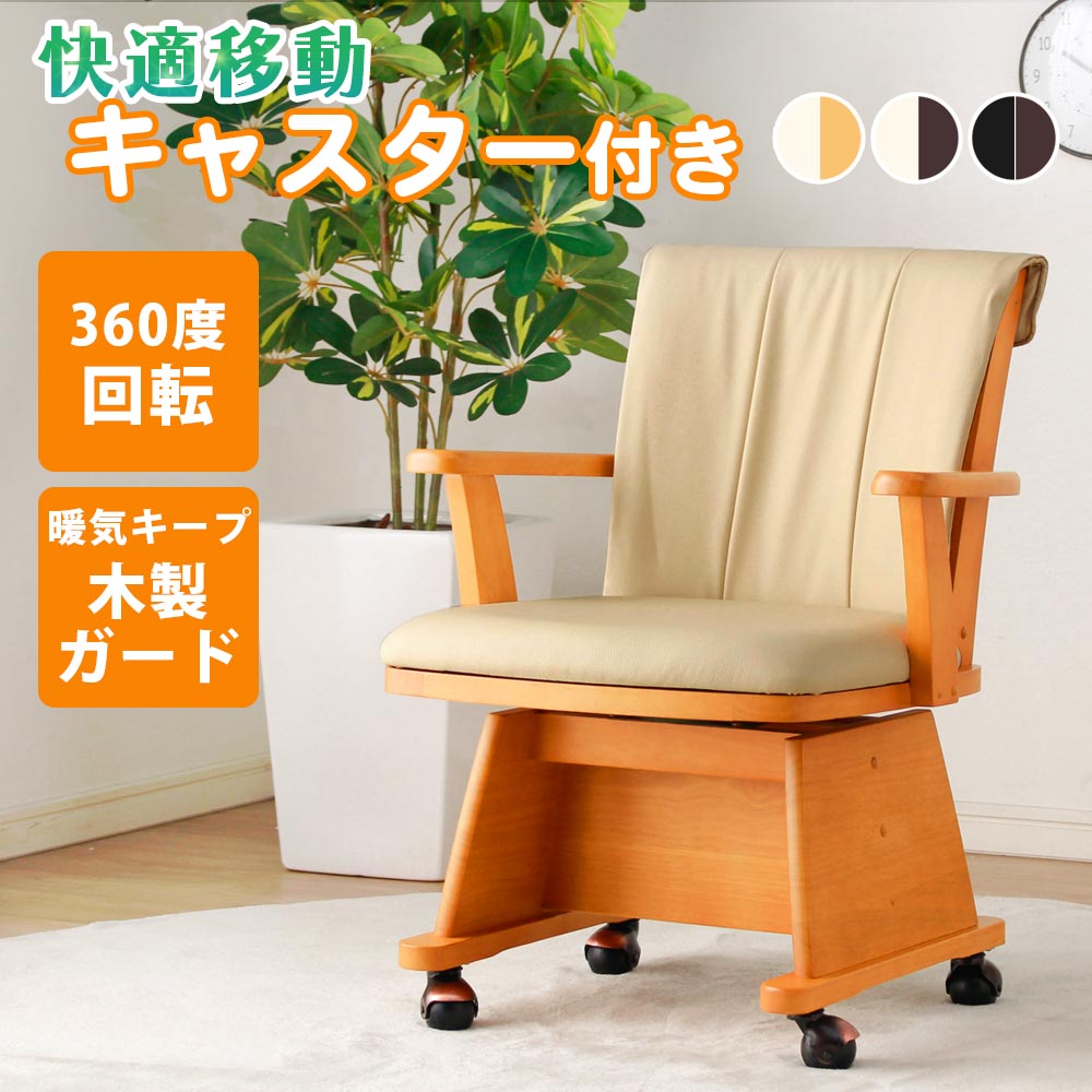 【送料無料】暖気を逃がさない木製ガード付き!コタツダイニングテーブルに特化した、コタツダイニングチェア。360度回転式で方向転換も簡単!嬉しいキャスター付き!