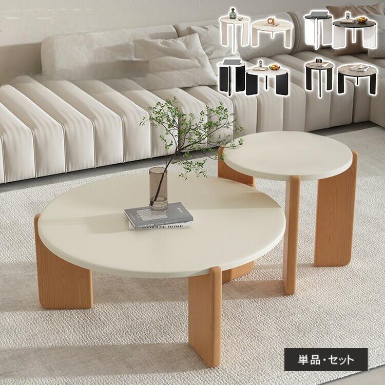 センターテーブル 円形 木製 ローテーブル 丸 幅70cm 丸テーブル ネストテーブル 丸いテーブル 天然木 北欧 ホワイト 白 おしゃれ 単品 2個セット ナチュラル 50cm 80cm 可 木目調