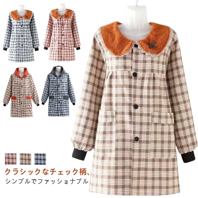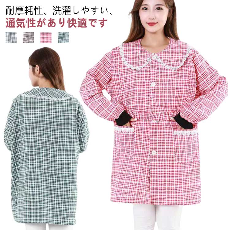 割烹着 おしゃれ かっぽう着 ウェア ウエアタイプ かわいい 襟付き レディース スモック チェック ルームウェア 保育士