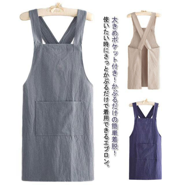 バッククロス エプロン ガーデニング 保育士 大きめポケット付き 北欧 リネン風 スタッフエプロン バッククロスエプロン カフェ メンズ 美容院 クロスバックエプロン レディース