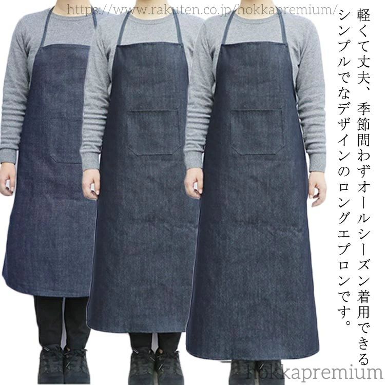 割烹着 無地 かっぽう着 長袖エプロン 撥水 エプロン 作業着 ロング丈 おしゃれ 防水 かっぽうぎ ワークエプロン ゆったり デニムエプロン 仕事用 料理教室 ポケット 大きいサイズ ガーデニング