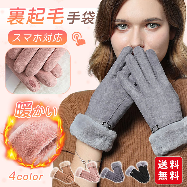 裏起毛 手袋 手ぶくろ スマホ対応 ふわふわ レディース 防寒 スマホ手袋 タッチパネル 秋冬 かわいい 厚手 保温 アウトドア 撥水加工